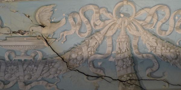 Under februari 2011 rengjordes väggarna och taket i entréhallen, lös puts och färg konsoliderades och lagades upp. Repor, bortfall och nya lagningar retuscherades för att smälta ihop med helheten.