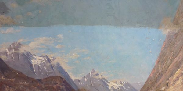 Läs merMålningen som föreställer ett norskt fjordlandskap var grå och fläckad av smuts och gamla mörknade retuscher. Vidare spjälkade färgen och hade fläckvis flagat av vilket lämnat den vita grunderingen synlig. Efter konservering var målningen betydligt ljusare och den lösa färgen var fixerad till underlaget.